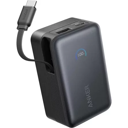 ANKER Powerbank Nano 10000mAh, 45W, Beépített USB-C kábel behúzható, fekete - A1638H11