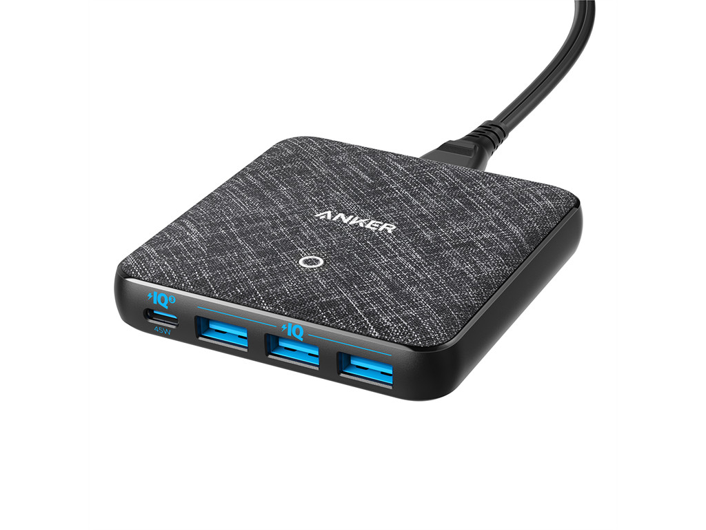 Anker, PowerPort Atom III Slim 45W USB C x1, 20W 3 x USB A EU Black Fabric
