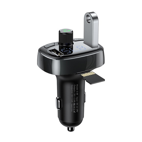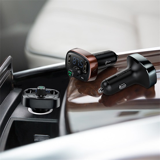 BASEUS bluetooth FM transmitter autós töltő 2 USB aljzat (36W, PD gyorstöltő, microSD kártyaolvasó) FEKETE