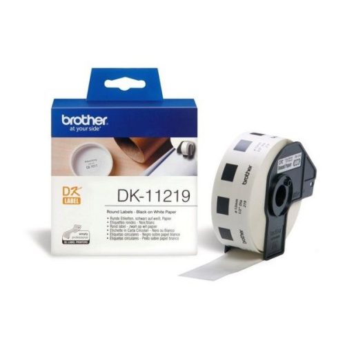 BROTHER Etikett címke DK-11219, Kör alakú papír címke 12mm Elővágott (stancolt), Fehér alapon fekete, 1200 db