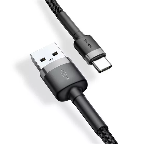 Baseus ACC Baseus Cafule USB Type-A – USB Type-C, 10W gyorstöltő adatkábel, 2m, fekete/szürke