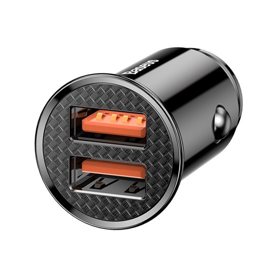 Baseus Circular Plastic autós gyorstöltő 30W, 2×USB Type-A, fekete