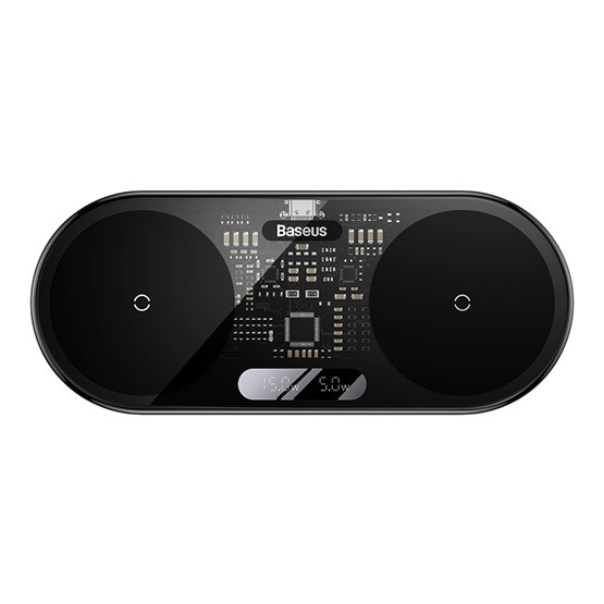 Baseus Digital LED Display 2-in-1 vezeték nélküli töltő 20W, fekete + 3A USB Type-A – USB Type-C, 1m kábel