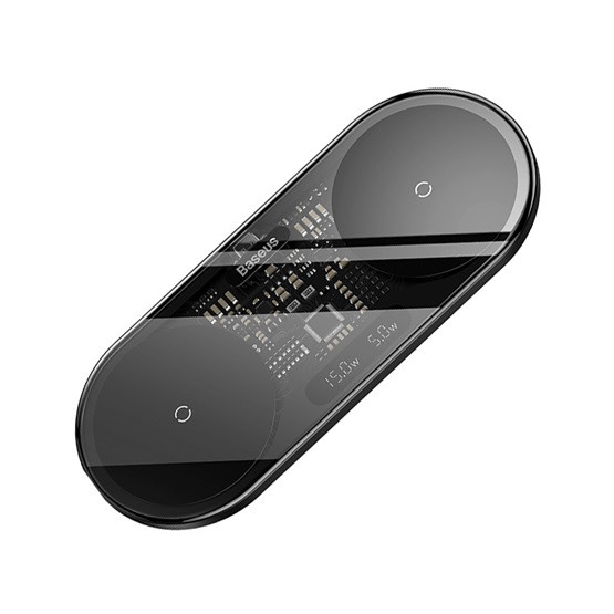 Baseus Digital LED Display 2-in-1 vezeték nélküli töltő 20W, fekete + 3A USB Type-A – USB Type-C,  1m kábel