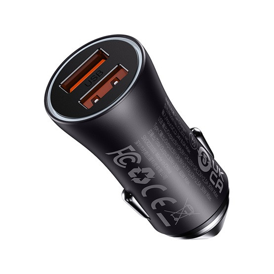 Baseus Golden Contactor Max autós gyorstöltő 60W, 2×USB Type-A, szürke