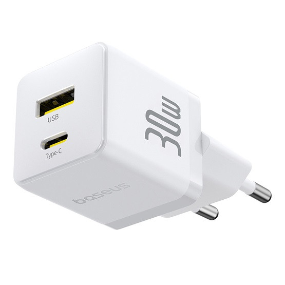 Baseus Palm hálózati gyorstöltő 30W, USB Type-C + USB Type-A, fehér