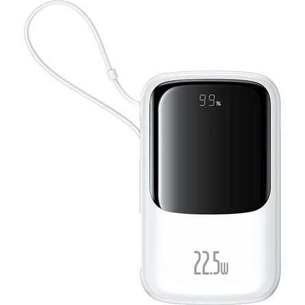Baseus Qpow Pro+ gyorstöltő powerbank 10000 mAh, 22.5W, beépített USB Type-C kábel, fehér