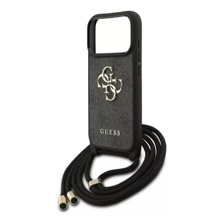 GUESS 4G BIG LOGO CORD STAP CROSSBODY műanyag telefonvédő ütésállóság, bőr hatású hátlap + vállpánt, FEKETE