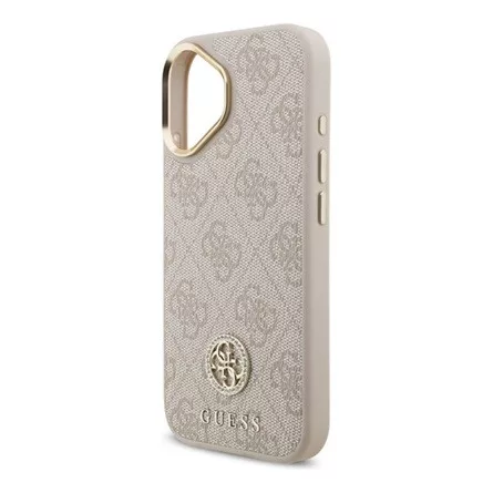 GUESS 4G STRASS LOGO & BIG STRAP METAL BUTTONS szilikon telefonvédő bőr hatású hátlap, MagSafe + vállpánt, RÓZSASZÍN