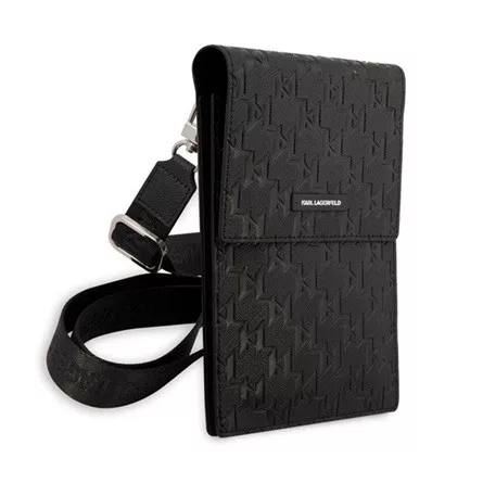 CG MOBILE KARL LAGERFELD SAFFIANO MONOGRAM kézitáska álló (univerzális, bőr hatású, vállpánt) FEKETE