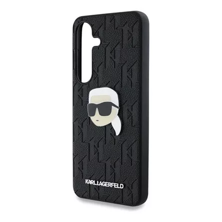Samsung S25 KARL LAGERFELD LEATHER MONOGRAM PIN LOGO KARL HEAD szilikon telefonvédő ütésállóság, FEKETE