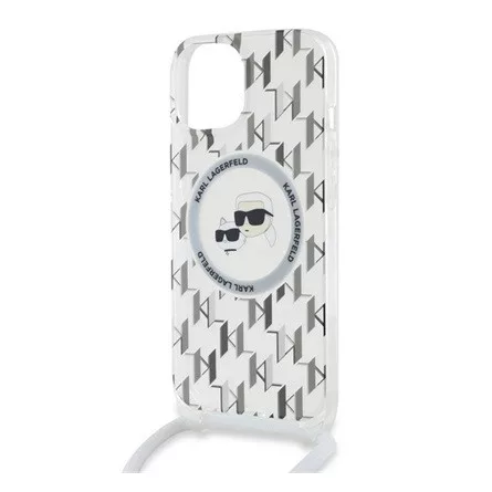 iPhone 15 KARL LAGERFELD IML MONOGRAM CROSSBODY K&CH HEADS MAGSAFE szilikon telefonvédő ütésállóság, nyakpánt, ÁTLÁTSZÓ