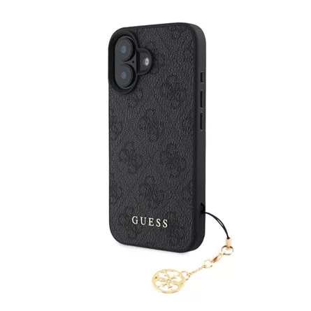CG MOBILE iPhone 16 GUESS 4G CHARMS műanyag telefonvédő textil hátlap, telefondísz, SÖTÉTSZÜRKE