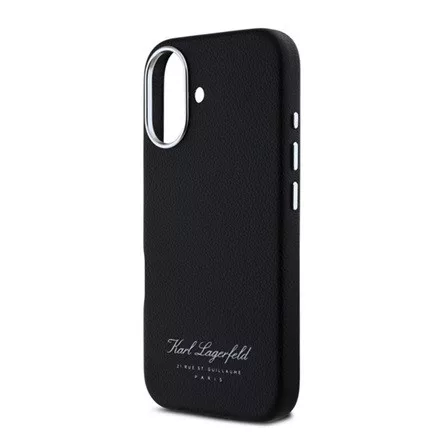 iPhone 16 KARL LAGERFELD GRAINED PU HOTEL RSG szilikon telefonvédő ütésállóság, bőr hatású hátlap, FEKETE