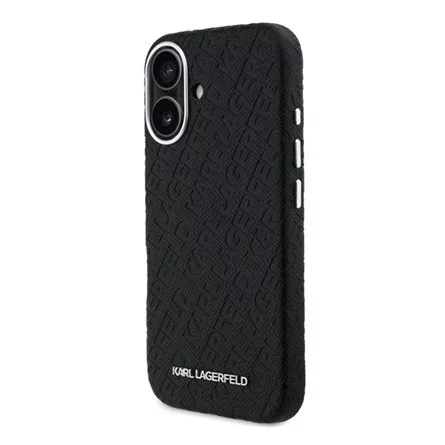 iPhone 16 KARL LAGERFELD GRAINED PU REPEATED LOGO MAGSAFE szilikon telefonvédő ütésállóság, MagSafe, FEKETE