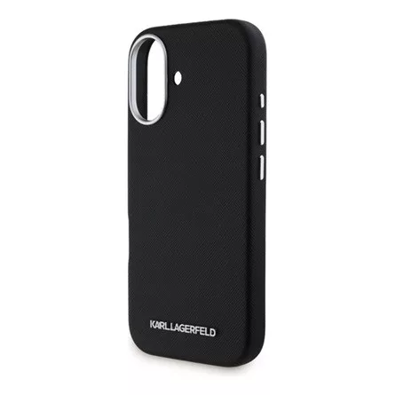 CG MOBILE iPhone 16 KARL LAGERFELD SAFFIANO FULL WRAPPED ELONGATED METAL LOGO szilikon telefonvédő ütésállóság, MagSafe, FEKETE