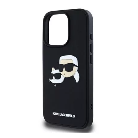 CG MOBILE iPhone 16 Pro KARL LAGERFELD 3D RUBBER DOUBLE HEADS szilikon telefonvédő ütésállóság, 3D, FEKETE