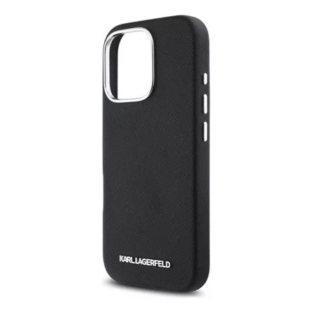 CG MOBILE iPhone 16 Pro KARL LAGERFELD SAFFIANO FULL WRAPPED ELONGATED METAL LOGO szilikon telefonvédő ütésállóság, FEKETE