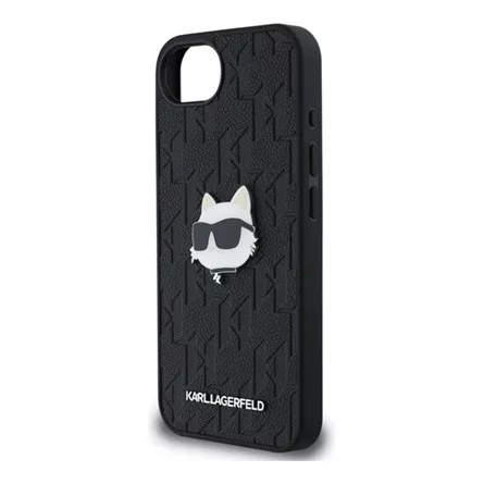 CG MOBILE iPhone 16e KARL LAGERFELD MONOGRAM CHOUPETTE HEAD PIN szilikon telefonvédő ütésállóság, MagSafe, FEKETE