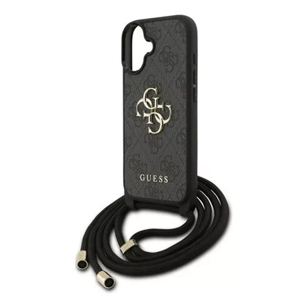iPhone 17 GUESS 4G BIG LOGO CORD STAP CROSSBODY műanyag telefonvédő ütésállóság, bőr hatású hátlap + vállpánt, FEKETE