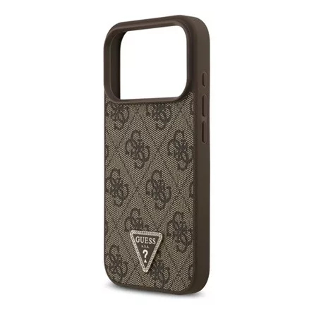 iPhone 17 Pro GUESS LEATHER 4G TRIANGLE STRASS MAGSAFE szilikon telefonvédő bőr hatású hátlap, MagSafe, SÖTÉTBARNA