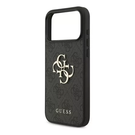 iPhone 17 Pro Max GUESS 4G BIG LOGO szilikon telefonvédő ütésállóság, bőr hatású hátlap, FEKETE