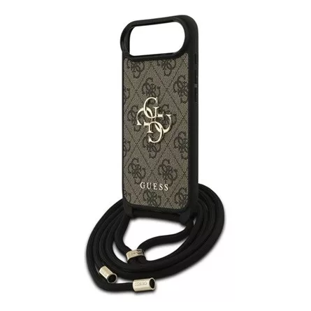 iPhone Air GUESS 4G BIG LOGO CORD STAP CROSSBODY műanyag telefonvédő ütésállóság, bőr hatású hátlap + vállpánt, BARNA
