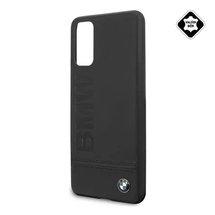 Samsung S20 5G BMW SIGNATURE IMPRINT logó műanyag telefonvédő valódi bőr bevonat FEKETE