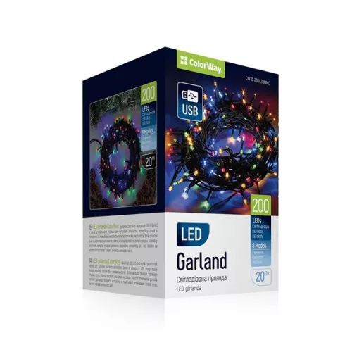 COLORWAY LED szalag, LED garland ColorWay LED 200, 20M (8 functions) multi-colored USB
