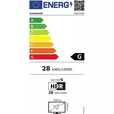 Alienware AW2725DF. Képernyő méret: 67,8 cm (26.7"), Képernyőfelbontás: 2560 x 1440 pixelek, HD típusa: Quad HD, Kijelző technológiája: QD-OLED, Válaszidő: 0,03 ms, Alap képméretarány: 16:9, Vízszintes látószög: 178°, Függőleges látószög: 178°. Beépített USB-elosztó, USB-elosztó verziója: 2.0 / 3.2 Gen 1 (3.1 Gen 1). VESA szerelés, Magasságigazítás. Termék színe: Fekete