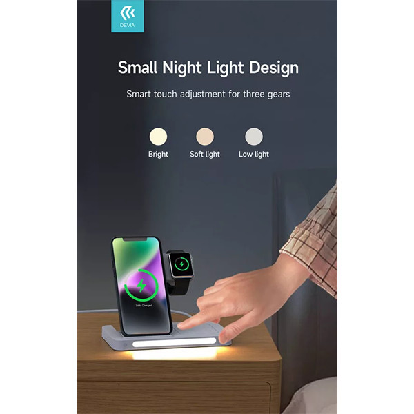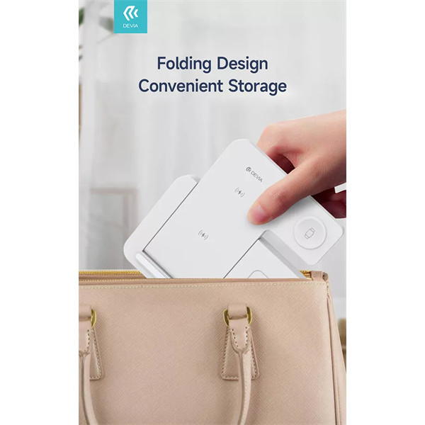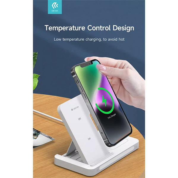 DEVIA QI UNIVERZÁLIS VEZETÉK NÉLKÜLI TÖLTŐ ÁLLOMÁS - 15W - 3in1: SMARTPHONE + IWATCH + AIRPODS - FEHÉR