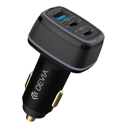 DEVIA SMART autós töltő USB+2 Type-C aljzat 115W, LED fény, FEKETE