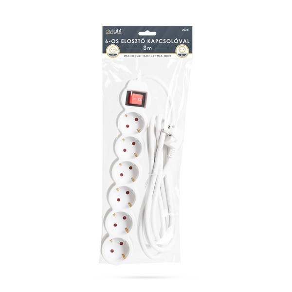 Delight hálózati elosztó - 20231 (6-os elosztó, kapcsolóval, 3m)