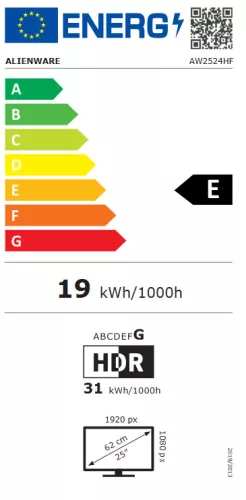 Dell Alienware AW2524HF 24.5" Gaming Monitor (fast IPS), Sötétszürke szín, Full HD 1920x1080 felbontás, 500 Mhz DisplayPort(OC), 178°/178°, 1000:1 kontrasztarány, WLED edgelight backlight, 400cd/m2 fényerő, 0.5 ms (grey-to-grey min) válaszidő, AMD FreeSync Premium, 1x HDMI 2.1 / 2x DisplayPort 1.4 / 4x USB 3.2 Gen 1, 90°-ban forgatható, kijelző és állítható magasságú, dönthető állvány, Pivot, Vesa 100X100, 3 év szerviz garancia