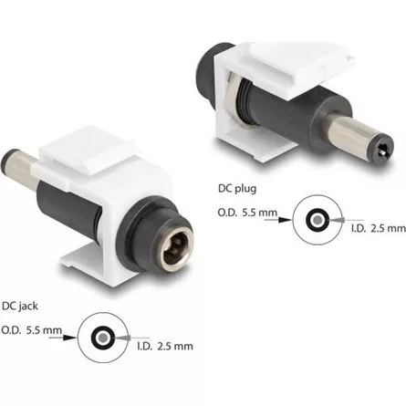 Delock Keystone modul, DC 5,5 x 2,5 mm-csatlakozóhüvely, DC 5,5 x 2,5 mm méretű apa, fehér