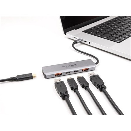 Delock USB 10 Gbps Hub 2 A-típusú USB port és 2 USB Type-C port USB Type-C csatlakozóval és PD 95 Watt