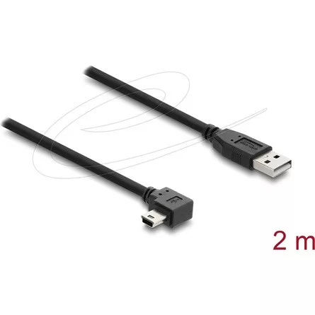 Delock USB 2.0 kábel A-típusú csatlakozódugó - Mini-B típusú csatlakozódugó, jobbra hajlítva, 2 m