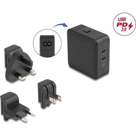 Delock USB GaN töltó 2 x USB Type-C PD 3.0 65 W teljesítménnyel