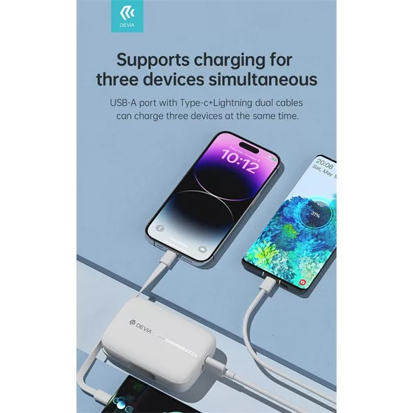 Devia Kintone Series - USB + Type-C - powerbank + Type-C/Lightning kábel - 10.000 mAh - fehér