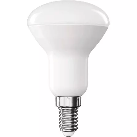 technológia: LED, foglalat: E14, fény színe: meleg fehér, helyettesítő: 40 W, forma: R50, fényáram: 470 lm, színhőmérséklet: 2 700 K, fogyasztás: 4,2 W, sorozat: CLASSIC, fényhasznosítás: 112 lm/W, energiaosztály: E, sugárzási szög: 120°, élettartam: 30 000 óra, garancia-időszak: 3 év, teljesítménytényező: 0.50, kapcsolási ciklusok száma: 30 000, színvisszaadási index (CRI): Ra >80, chipek típusa: SMD, feszültség: 230 V~/50 Hz, méretek: 50 × 50 × 83 mm, értékesítési csomagolás: 1 db, kis doboz