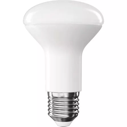 technológia: LED, foglalat: E27, fény színe: természetes fehér, helyettesítő: 60 W, forma: R63, fényáram: 806 lm, színhőmérséklet: 4 000 K, fogyasztás: 7 W, sorozat: CLASSIC, fényhasznosítás: 115 lm/W, energiaosztály: E, sugárzási szög: 120°, élettartam: 30 000 óra, garancia-időszak: 3 év, teljesítménytényező: 0.50, kapcsolási ciklusok száma: 30 000, színvisszaadási index (CRI): Ra >80, chipek típusa: SMD, feszültség: 230 V~/50 Hz, méretek: 63 × 63 × 97 mm, értékesítési csomagolás: 1 db, kis doboz