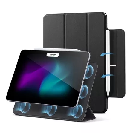 Esr IPAD Pro 12.9 (2018) ESR REBOUND MAGNET tok álló, bőr hatású aktív FLIP, ceruza tartó, FEKETE