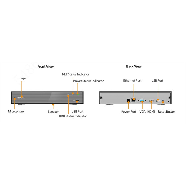 Imou NVR rögzítő - NVR-N110-8A0E (10 csatorna, H265, HDMI, VGA, USB, 1x Sata (max16TB), Onvif; Hangsz; Mikrofon)