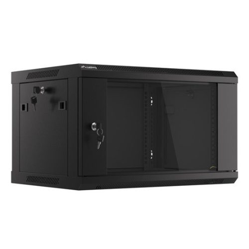 Lanberg 19" fali rack szekrény 6U/600X450 üvegajtó, lapraszerelt, fekete V2