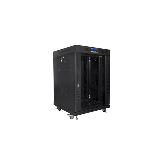 Lanberg 19" szabadon álló rack szekrény 15U/600X600 üvegajtó, lapraszerelt, LCD kijelző, fekete V2