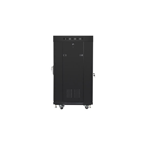 Lanberg 19" szabadon álló rack szekrény 22U/600X600 perforált ajtó, lapraszerelt, LCD kijelző, fekete V2