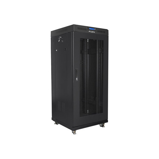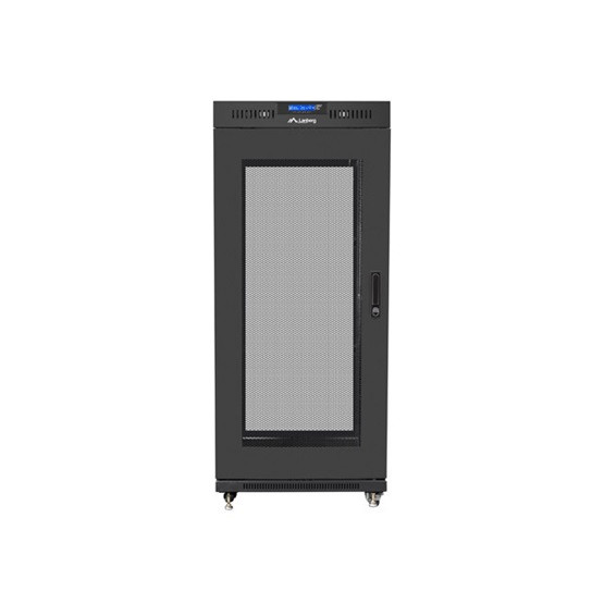 Lanberg 19" szabadon álló rack szekrény 27U/600X600 perforált ajtó, lapraszerelt, LCD kijelző, fekete V2