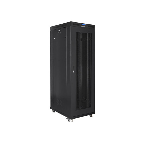 Lanberg 19" szabadon álló rack szekrény 42U/800X1000 perforált ajtó, lapraszerelt, LCD kijelző, fekete V2