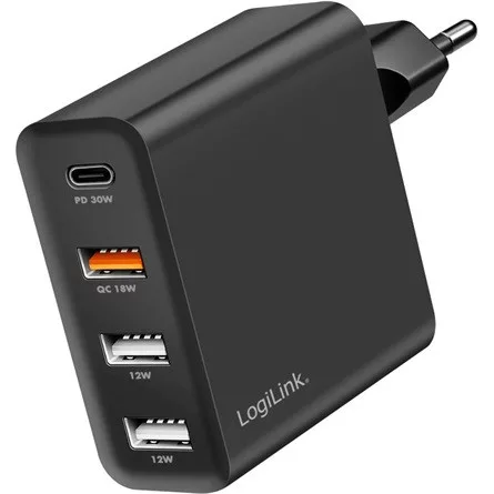 Logilink 4 portos USB aljzat adapter, 48 W, 1x USB-C PD és 3x USB-A QC