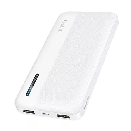 Logilink Powerbank 10 000 mAh, 2x USB-A, USB-C, gyorstöltés funkcióval, fehér